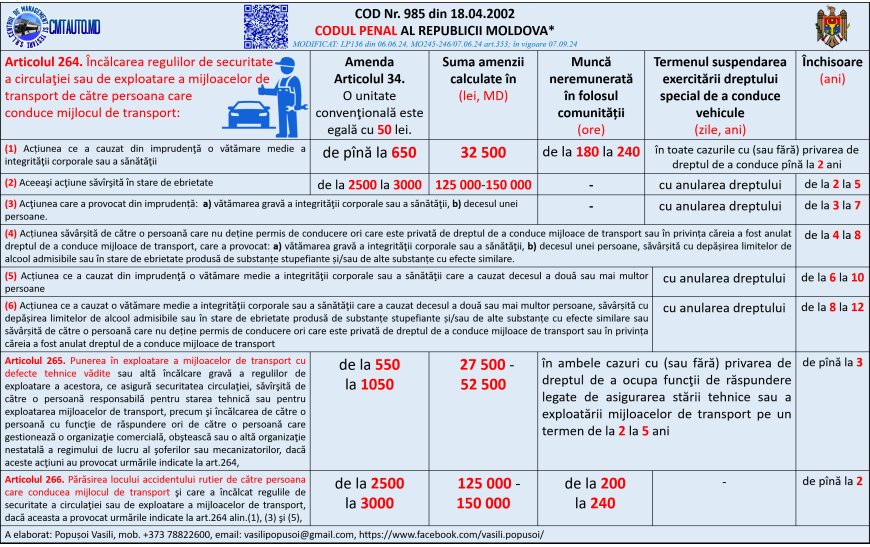 Amenzi pentru încălcarea regulilor de exploatare a mijlocului de transport